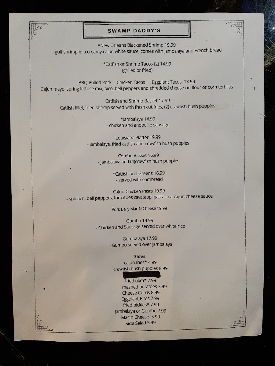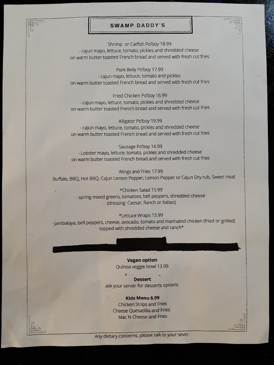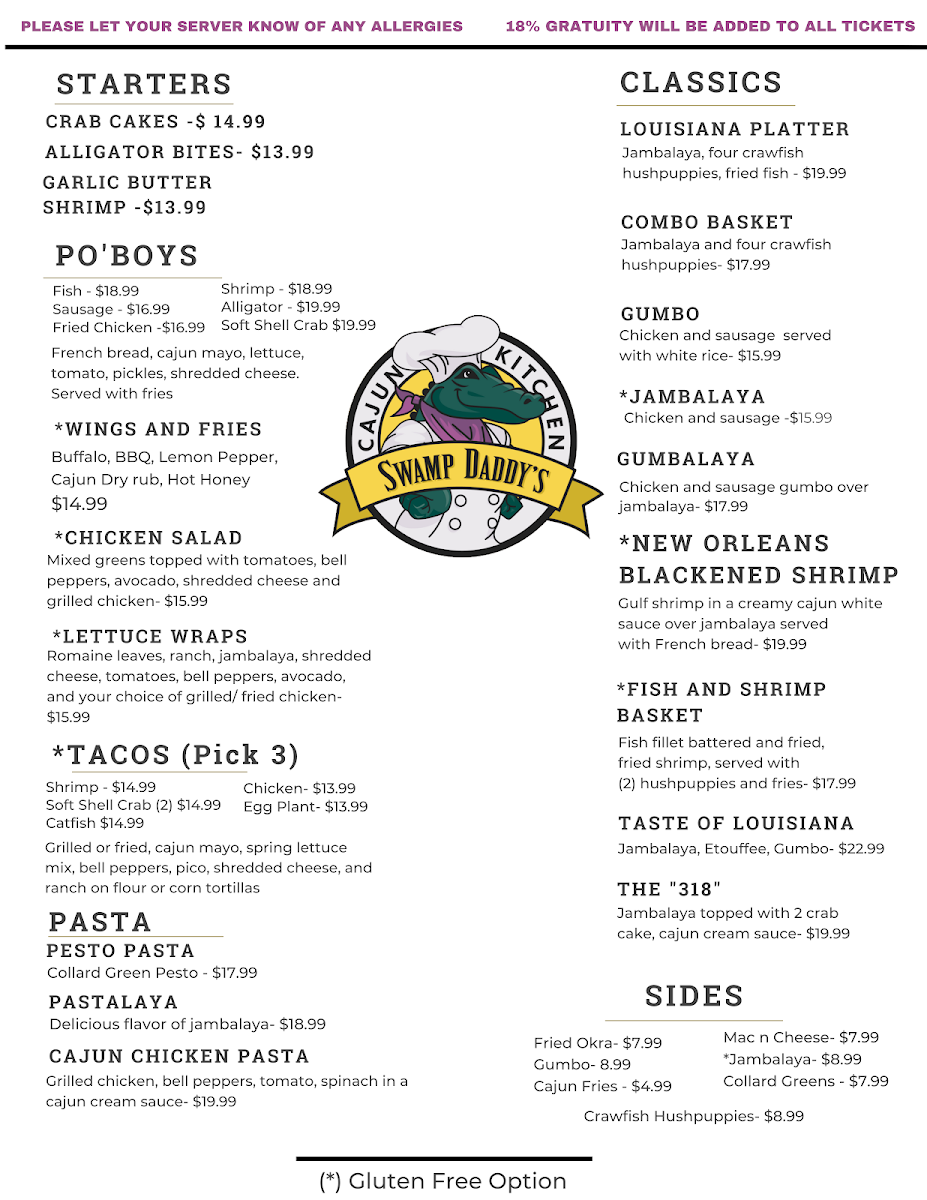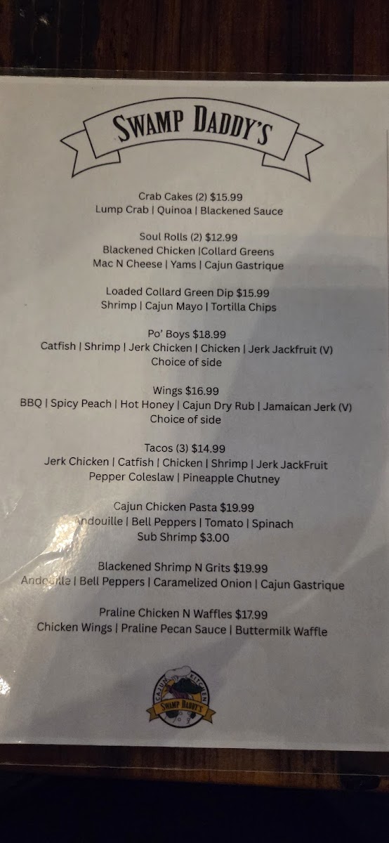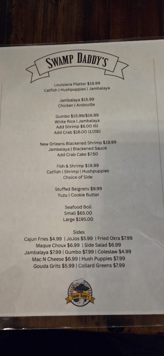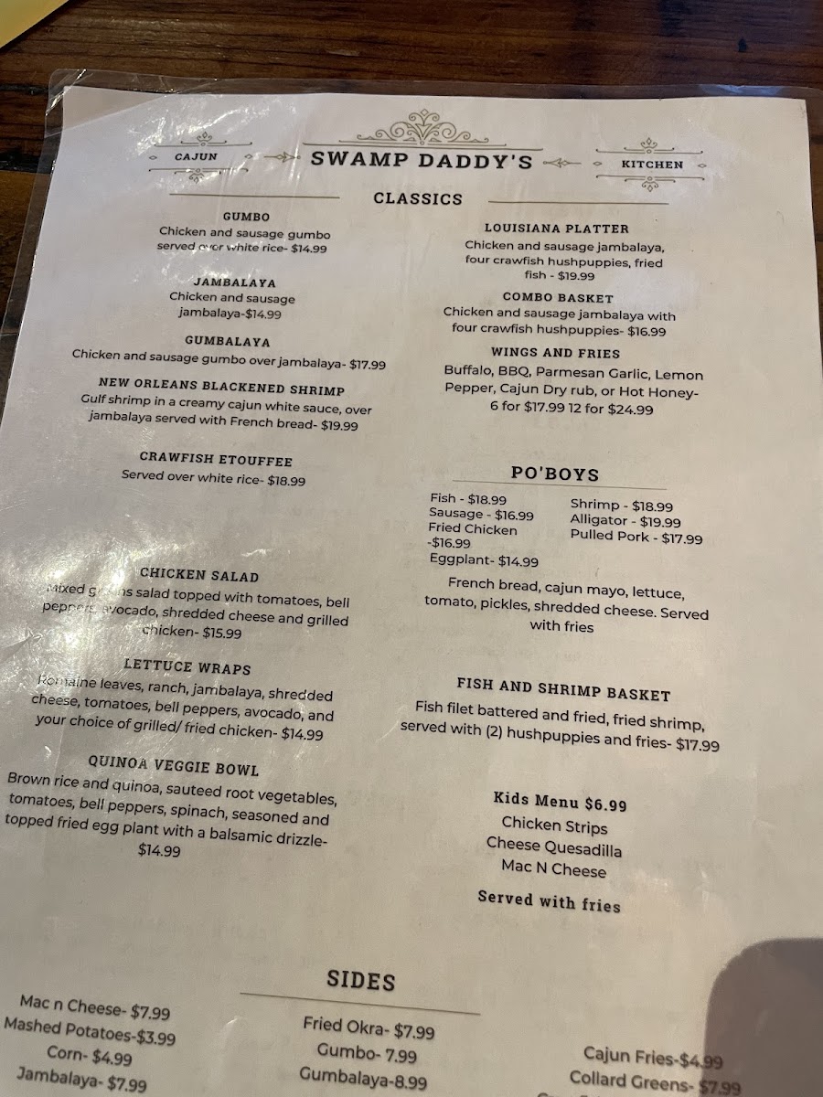 If you're craving bold flavors and southern comfort, look no further than Swamp Daddy's Cajun Kitchen Menu. Located at 421 N Phillips Ave in Sioux Falls, SD, this spot brings the heart and soul of Cajun cooking right to your table. Their menu is packed with a variety of dishes that will transport your taste buds straight to the bayou. Whether you're in the mood for some crispy fried catfish, a hearty gumbo, or their signature po'boys, each bite is a celebration of Cajun flavors. The rich spices and fresh ingredients come together in a way that feels both comforting and exciting. From the first course to the last, you're in for a treat. Make sure to dive into their specials for something extra tasty and unique!